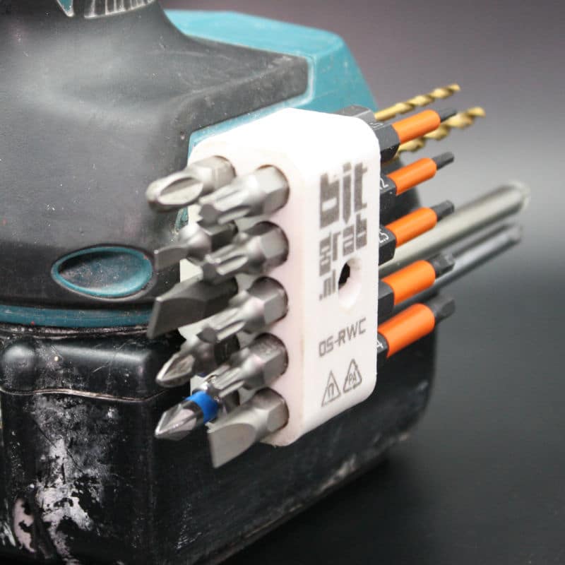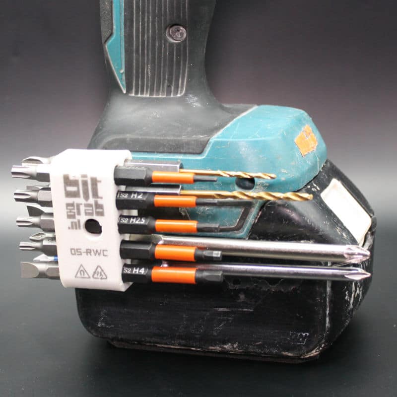 De bithouder is bedoeld om aan de rechterkant van de boormachine/slagschroefmachine te hangen op de plek voor de broekriem haak, die meestal links zit. Zo steken de bits langs de accu waardoor ze niet in de weg zitten tijdens het boren en schroeven.